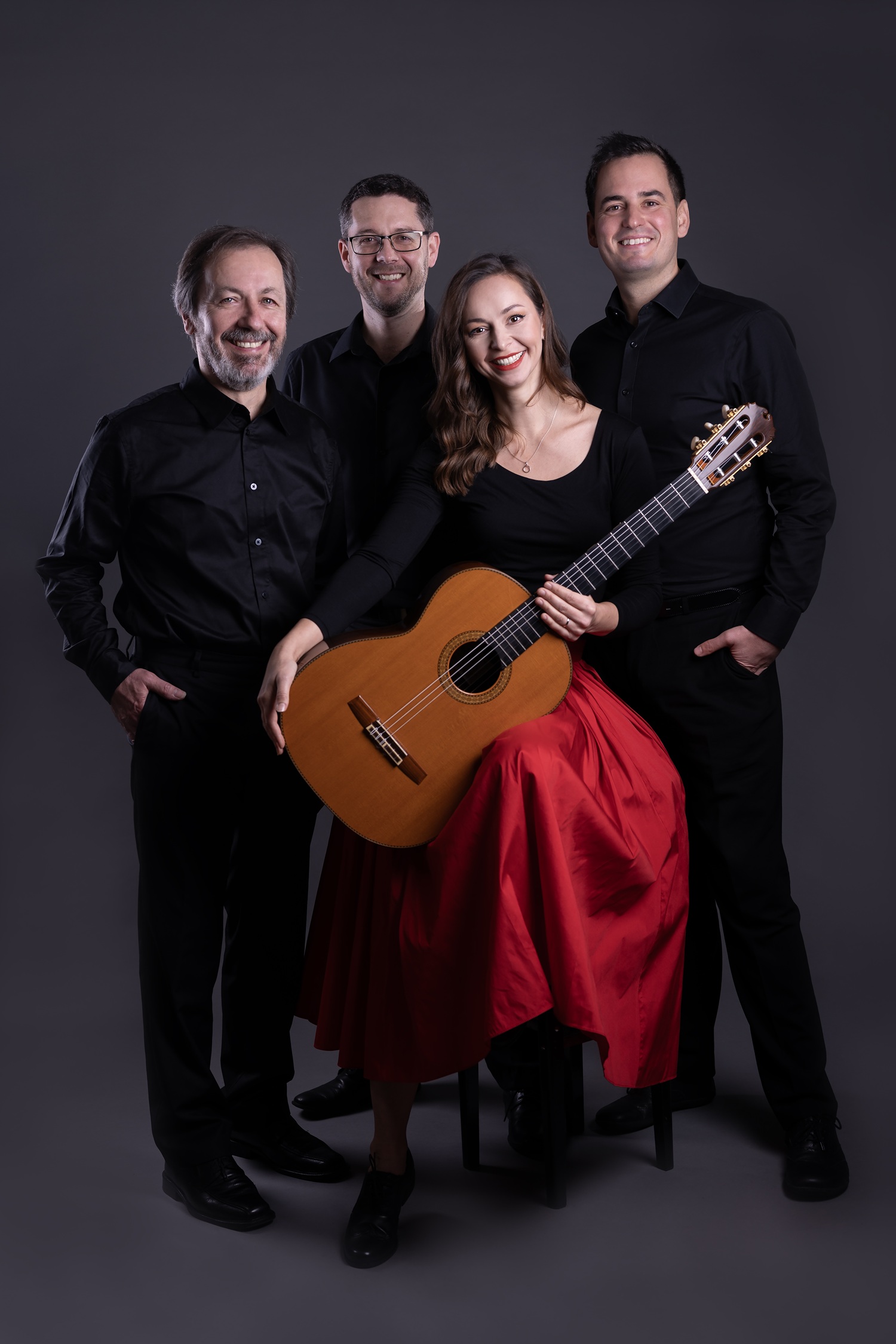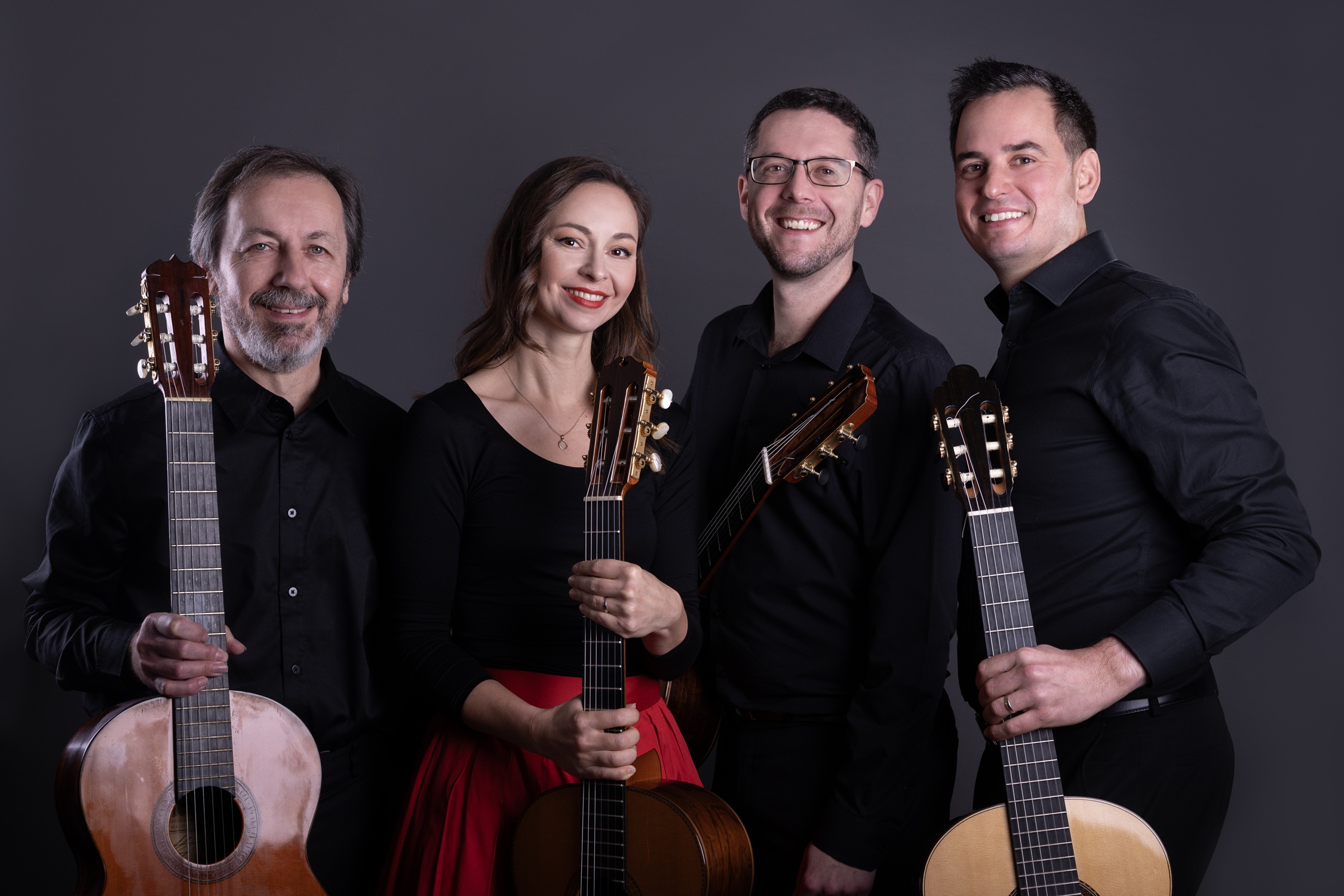 The Prague Guitar Quartet, established at the Prague Conservatory of Music in 1984, swiftly garnered acclaim from audiences both home and worldwide. Comprising laureates of international competitions, the quartet has been invited to numerous music and guitar festivals across Europe, the USA, and the Middle East. During its forty years of existence, the PGQ has recorded for radio, television, and multiple CDs. Critics unanimously praised the quartet's virtuosity, unified sound, diverse and tasteful repertoire, and musical expressivity. These accolades have inspired prominent Czech and foreign composers to write compositions dedicated to the ensemble. Additionally, the quartet enriches its repertoire with its own arrangements spanning various historical periods and styles. The current members include Marek Velemínský, Eliška Holá, Matěj Freml, and Patrick Vacík.